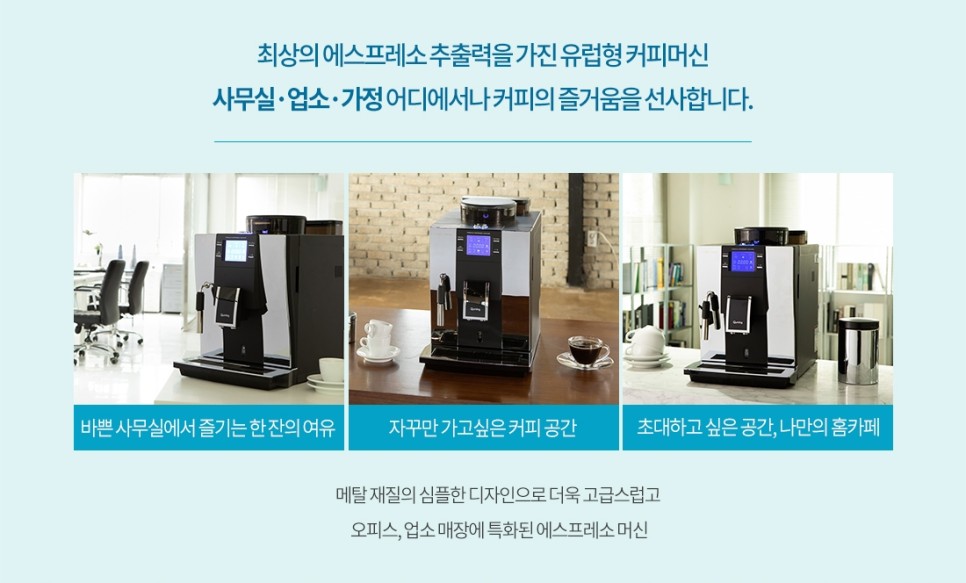 사무실,업소,가정 어디서나 커피의 즐거움을 느껴볼 수 있어요!